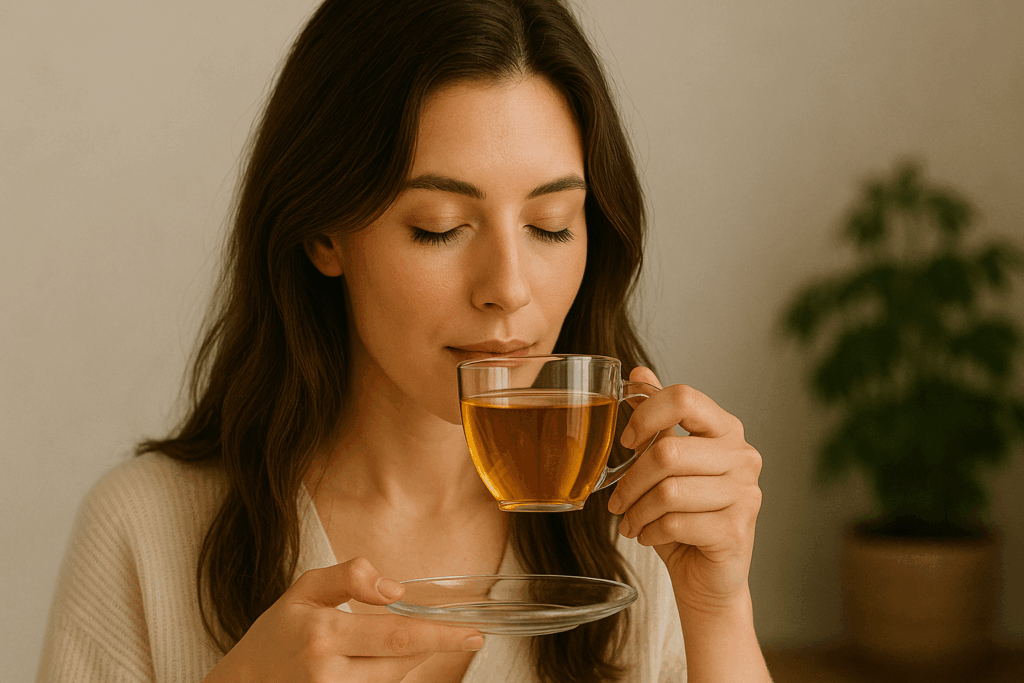 - 温かいハーブティーを飲みながら日記をつける